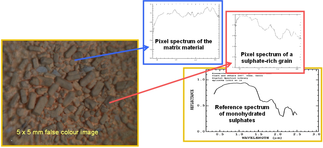 Depicts: Image of sulphate sample at a pixel level acquired by the MicrOmega prototype.