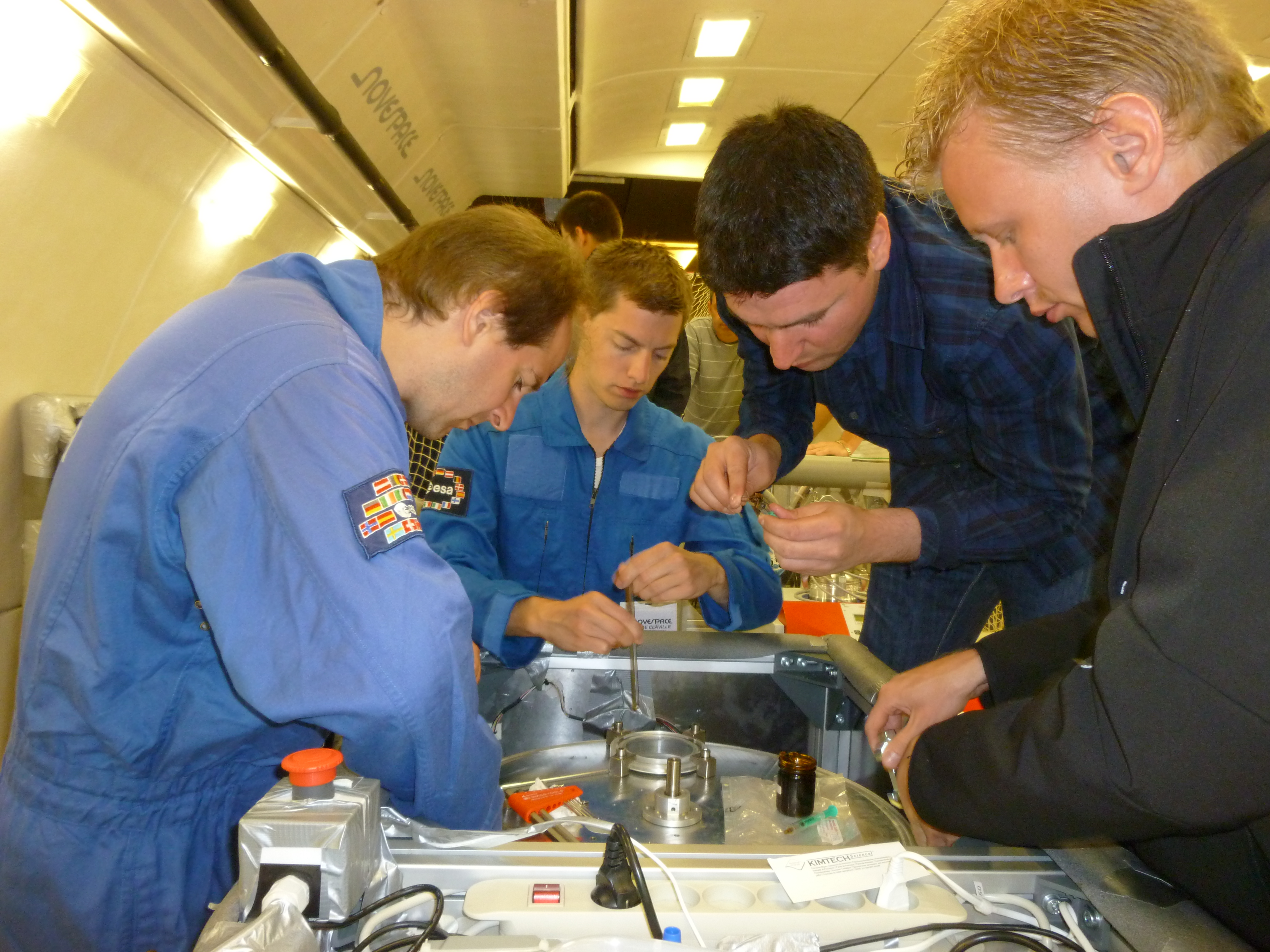 Preparation of the ExoMars experiment on the Zero-G aircraft.