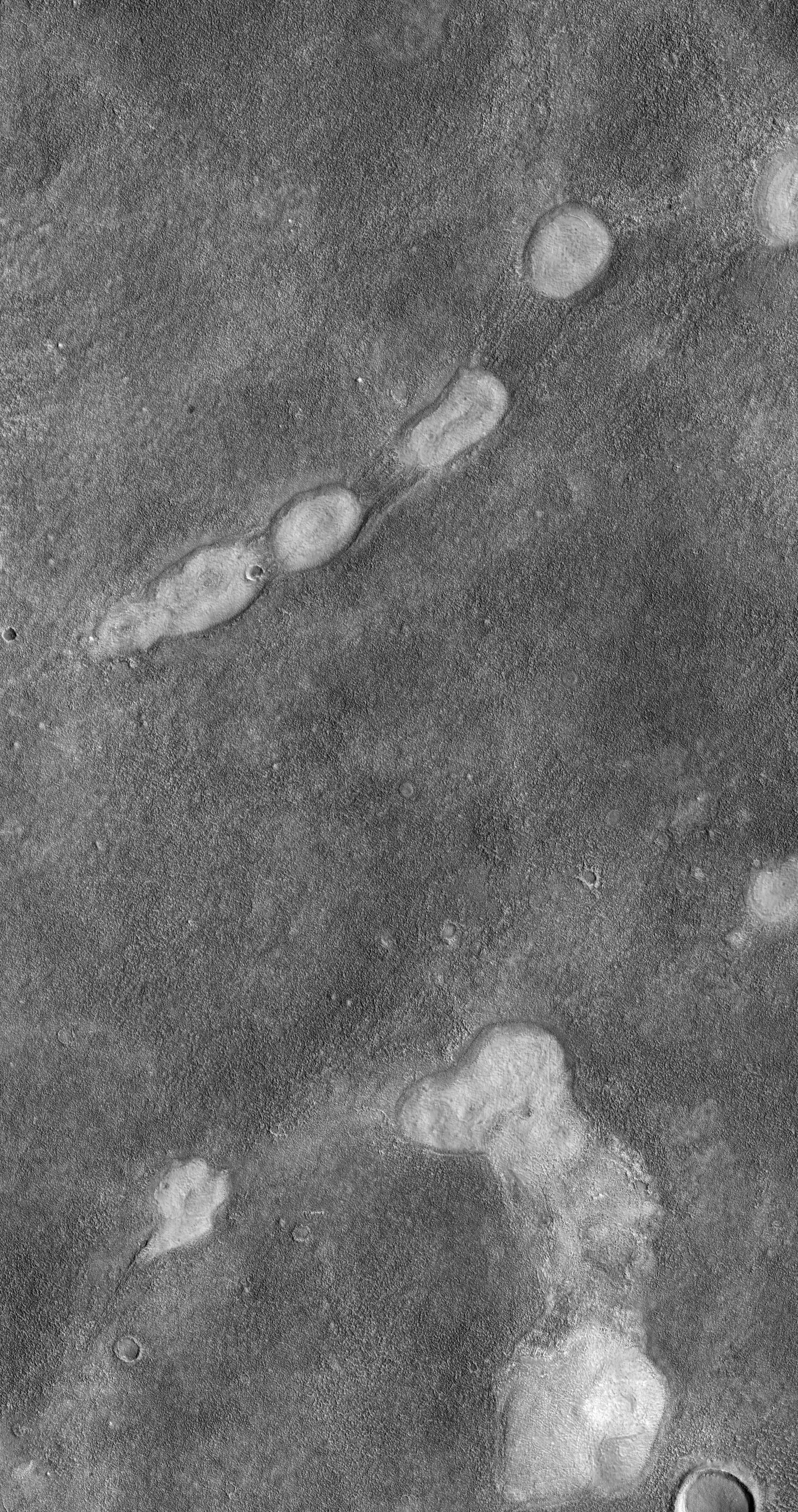 This image of a site in Acidalia Planitia on Mars depicts densely situated mounds, which are thought to be mud volcanoes.