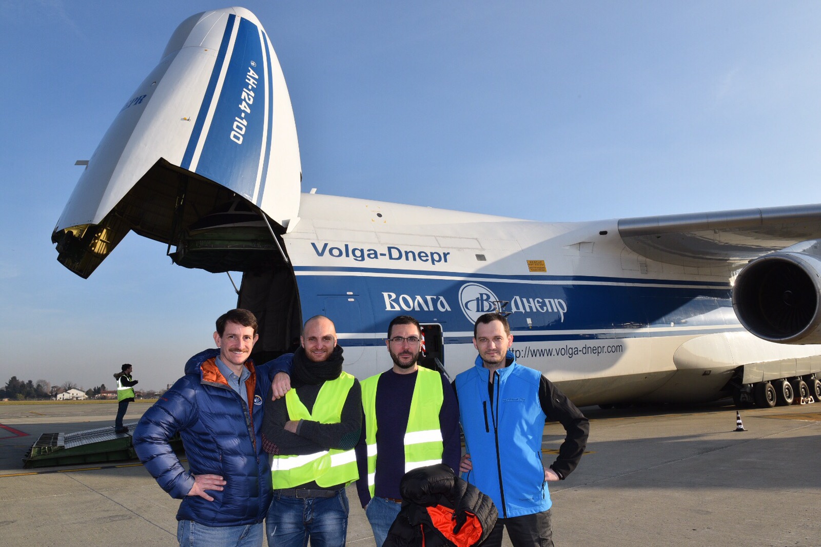 Some of the ExoMars team pictured in front of the Antonov cargo plane that will transport the ExoMars Trace Gas Orbiter from Turin-Caselle airport (Italy) to Baikonur.