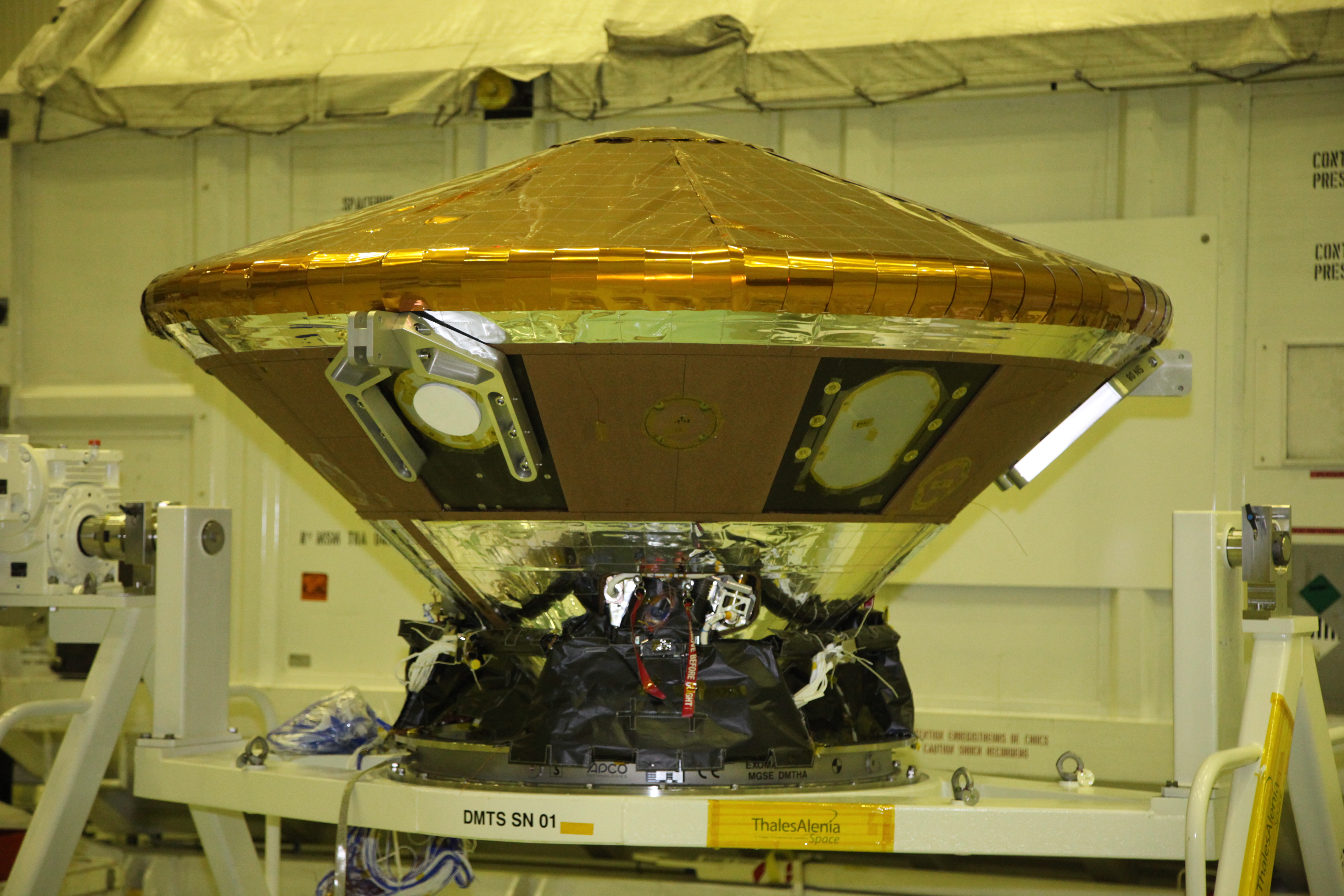 The Schiaparelli entry, descent and landing module in the cleanroom at Baikonur.