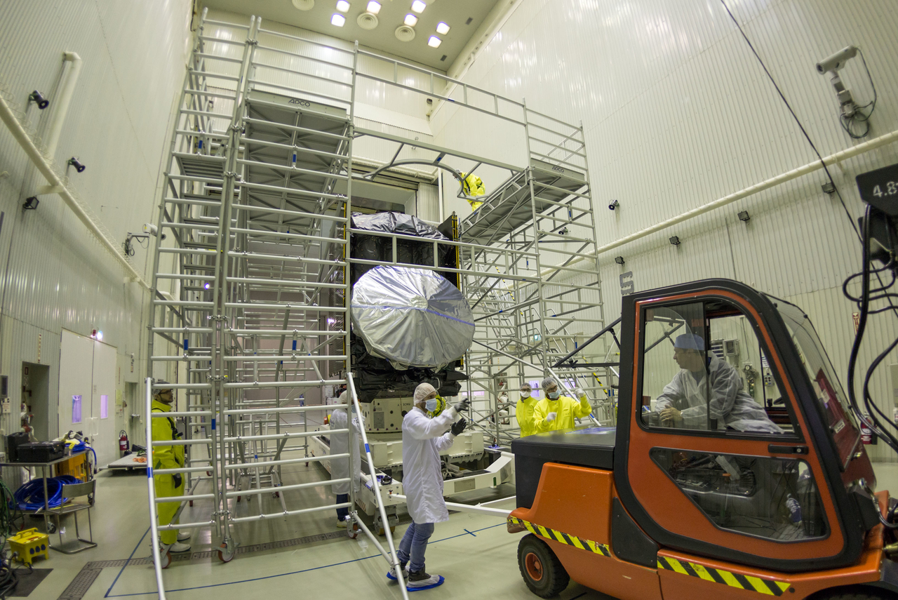 The scaffolding and platform are in place to facilitate the activities that need to be carried out to unite Schiaparelli and the Trace Gas Orbiter.