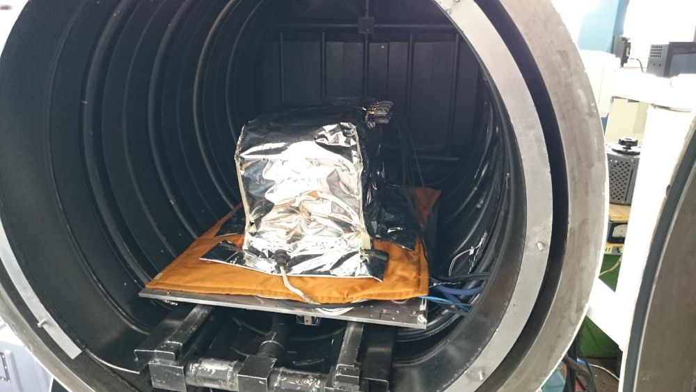 The FREND flight spare model inside the thermal vacuum chamber at the IKI Testing and Control Station, during final checks before the tests.
