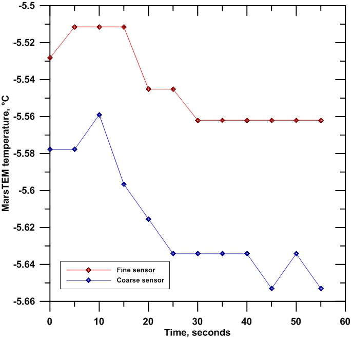 This figure shows measurements taken on 8 April 2016 with the MarsTem sensor on DREAMS, during the near-Earth checkout.